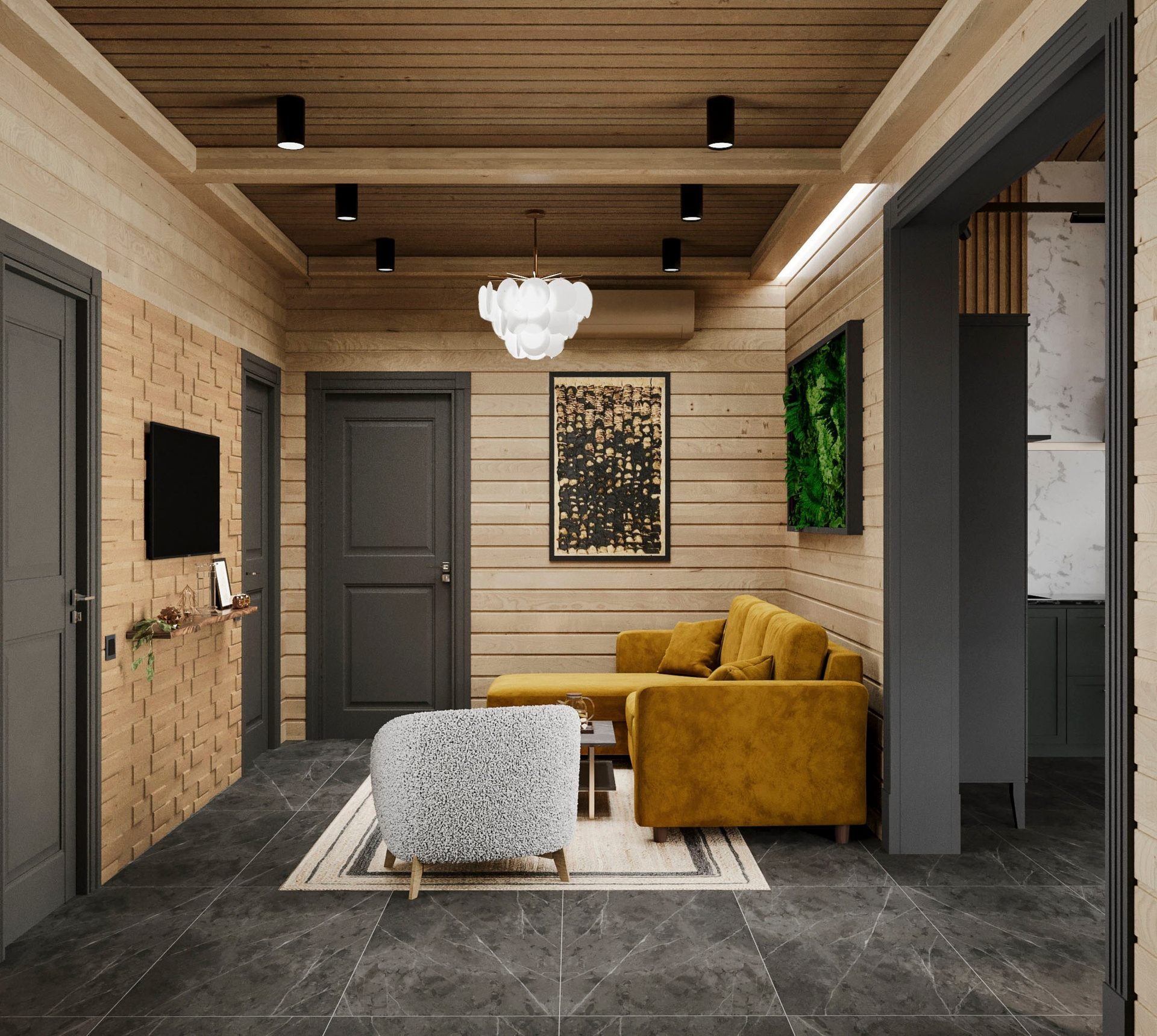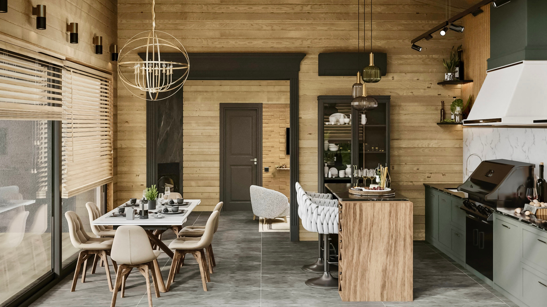 Кухня-гостиная, сан.узел и детская из частного дома в КП «Киварин Ручей»